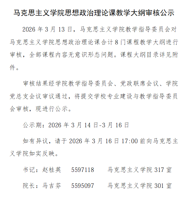 千亿球友会百家乐思想政治理论课教学大纲审核公示